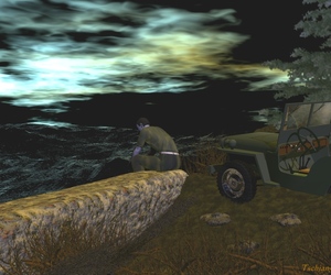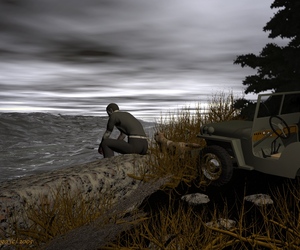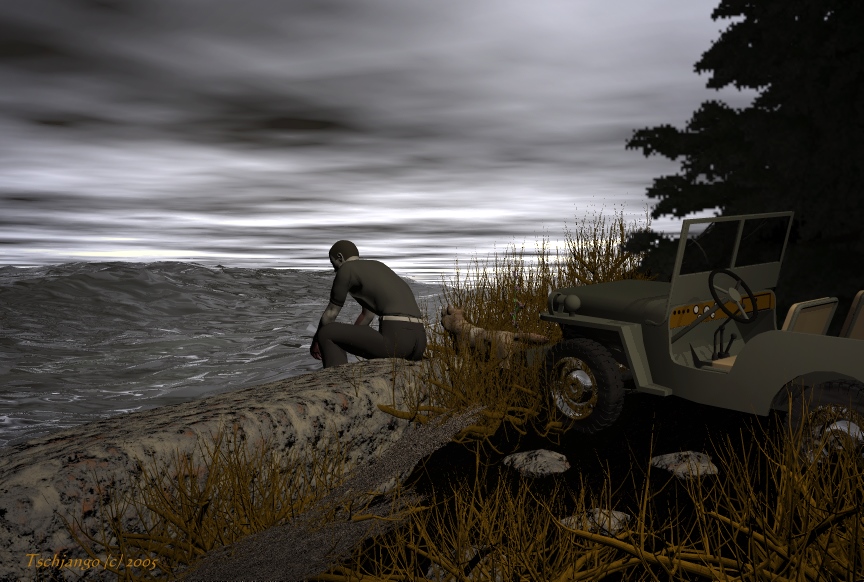 mol kein schiff :d, ein einfaches bild mit schneller renderzeit, so nebenei mal... der jeep ist von dj. hier vom board, ..nur ohne *abzeichen* und mit anderen felgen^^