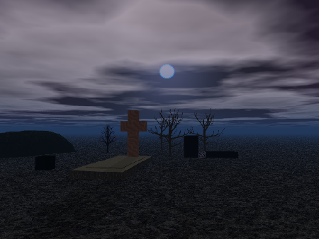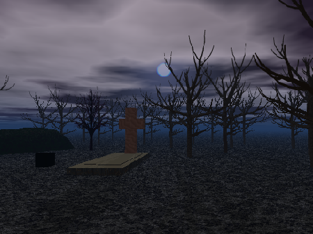 Das Bild ist sehr dunkel und ich wusste nicht wie ich das Grab aus Stein heller erscheinen lassen könnte. Wenn ich den Mond höher plaziert habe, sah man dann das Grab besser, aber den Mond nicht mehr.