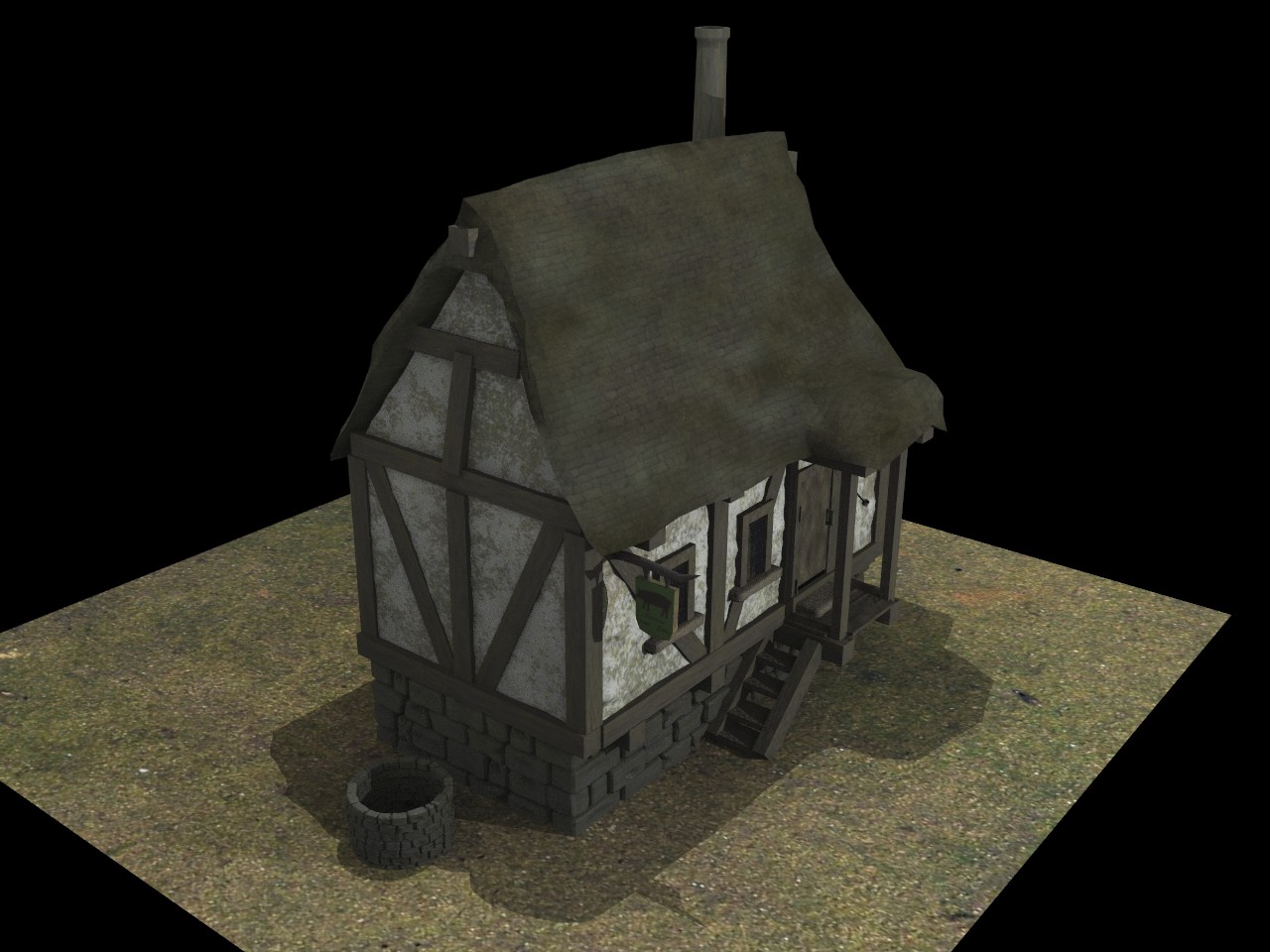 Wenn es möglich ist, könntest du vielleicht die Wände und Kanten des Hauses uneben machen, alte Häuser sind immer etwas buckelig. Manche gehen nach unten hin sogar ein bisschen in die Breite.