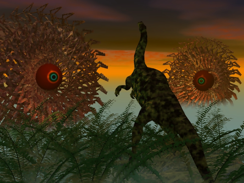 ich hab am Wochenende mal wieder ein Bild gemacht. Was das eigentlich sein soll, weiß ich selber nicht, aber ich weiß, wie die Sache ausgegangen ist - Dinos sind jetzt ausgestorben. Vielleicht sind die komischen Tausendfüßler ja daran schuld. ?(