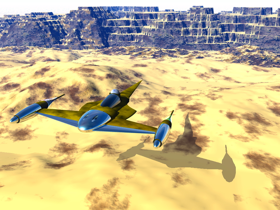 Ich arbeite unter Bryce 2 :( :( :( , aber ich habe noch kein passendes Material für den Nabbofighter gefunden. Dann habe ich eines Bearbeitet, bis es mir gefiel, aber beim Nächsten Mal war es dann nicht mehr da und der Fighter war dann Bunt gestreift. Hat jemand vielleicht eine 2D Textur in Gelb-Metallischer Farbe ?