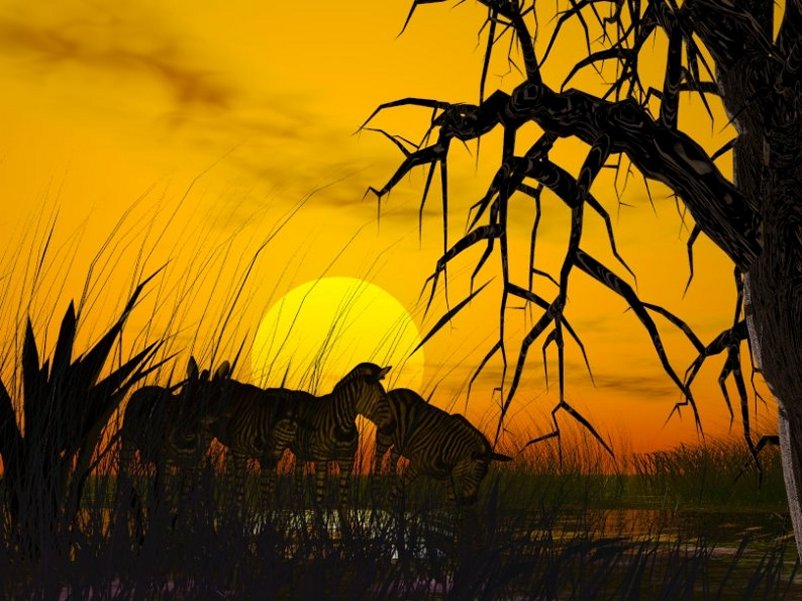 Aber der Himmel, die Sonne und die Tiere sind sehr gut in Szene gesetzt. Auch das Gras/Schilf ist sehr gut gelungen. Ein sehr harmonisches Bild.