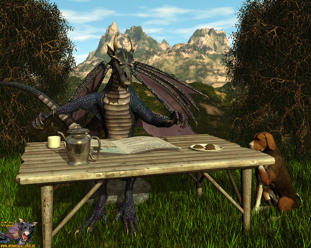 Ich wußte garnicht, daß Drachen lesen können. Oder guckt er nur die Bilder an? ![]()