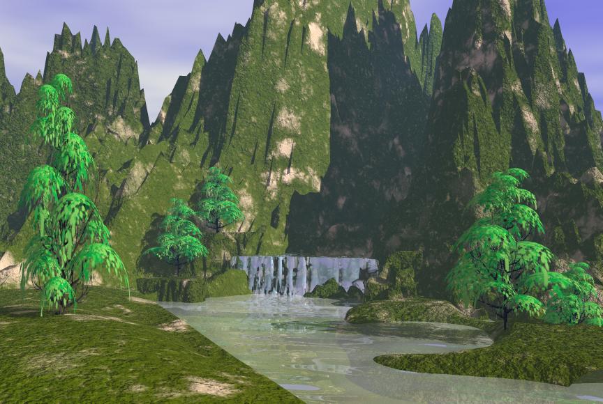 jetzt ist die Kamera so nah am Wasserfall das man die Gischt vermisst und jetzt fällt auf, dass der Wasserfall viel zu glatt ist. Ich weiß jetzt nicht wie Du den Wasserfall erstellt hast, aber wenn es möglich ist dupliziere ihn (Strg + d) ziehe ihn ein wenig nach vorne und versehe diesen Wasserfall mit einer Wolkentextur oder etwas ähnliches. Irgendwas, das Wasserspritzer darstellen kann. Schau mal bei der Renderrosity.com vorbei, die haben gute Texturen im Download Bereich. (Kostenlose Anmeldung erforderlich).