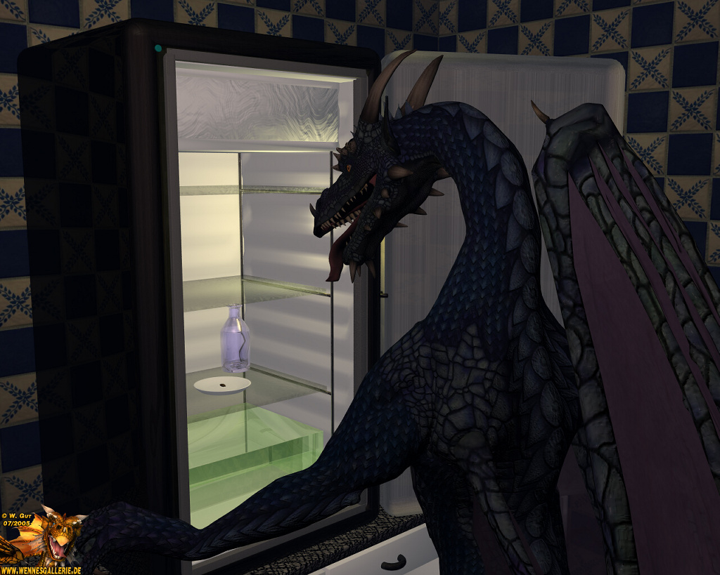 • hallo wenne mein kühlschrank sieht auch immer so aus wenn meine kinder nebst enkel ein we bei uns waren. kommt gut die beleuchtung vom k-schrank. oder sit der drache einer von der sorte ich faste und nachts dann plündern gehn.
