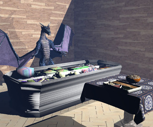 • Da wir ja alle wissen, dass Dragobert ein sehr sehr lieber und gutmütiger Drache ist, der vor allen Dingen auch selber sehr großzügig ist (siehe auch das Bild mit den tollen Plätzchen, die er mit dem Wuffi geteilt hat), bin ich sofort auf die Suche gegangen und habe einen Drago-Laden gefunden, in dem man essen und nätürlich auch einkaufen kann. Das Beste an diesem Laden ist jedoch, dass kein Drache etwas dafür zahlen muss, da dieser Laden extra für Pleite-Dragos eröffnet wurde. Viele, unzählige Spenden von Usern, die die liebenswürdige Variante unseres Dragobert mögen, machen es möglich, denn: "KEIN DRACHE soll Hunger leiden".
