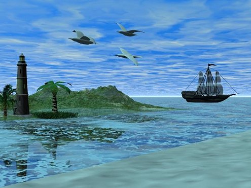das will ich ja.Nur warum ich keine Texture genommen habe bei den Möver ist das die ja in Natur auch weiß sind. Zu Leuchturm da habe ich mir gedacht das der höher sein muß als die Berge damit der auch überall gesehen werden kann. Mit dem Boot da kenne ich mich noch nicht so aus.