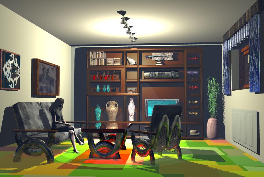 Würde das Licht etwas stärker machen, damit die Schatten in und um die Schrankwand weniger werden.