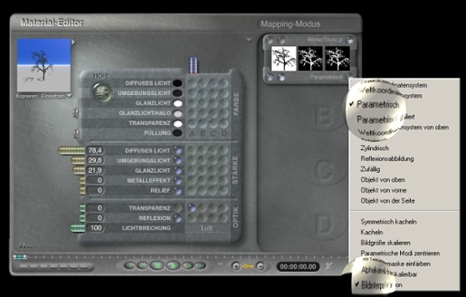 Der PC und die mit ihm erstellten Bilder sind in allen Entfernungslagen scharf.Also nach arbeiten. Ich habe den Baum im Materialeditor unscharf gemacht.Unter