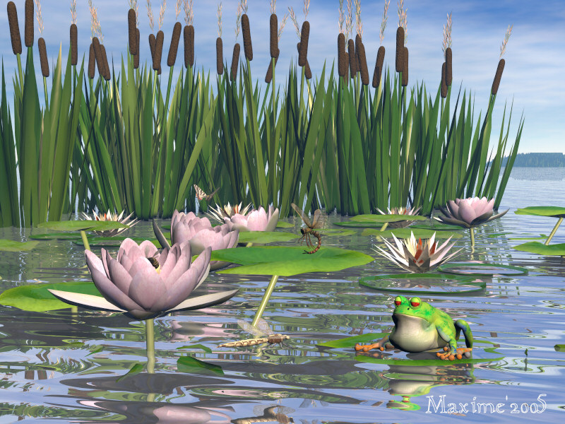 Update gibt es auch noch, Reflektion vom Wasser erhöht, bei den Seerosen Glanzlicht hochgesetzt und noch bissel Reflektion drauf und noch eine andere Textur fürs Schilf.