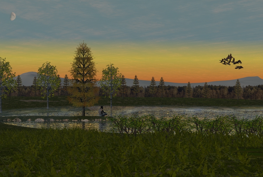 - Ein bißchen schade finde ich, daß du nur 2 verschiedene Bäume verwendet hast, die des öfteren geklont wurden. Tip: Jedesmal, wenn du einen besonders schönen Bryce-Baum hinbekommen hast, speicher ihn in der Objektbibliothek ab. Dann hat man irgendwann ne gute Auswahl, die mit einem Klick verfügbar ist - und es kommt keine Gleichförmigkeit mehr auf.