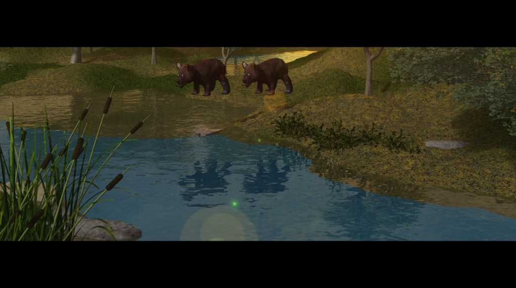 was mich ein wenig irritiert, ist, dass das Wasser im Vordergrund blau ist und weiter hinten zum Ufer, wo die Bären sind, bräunlich....