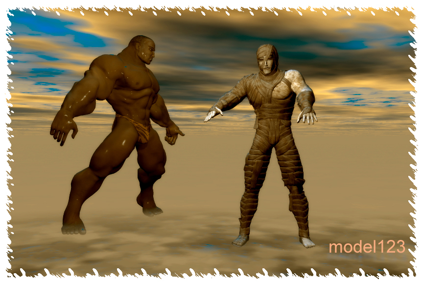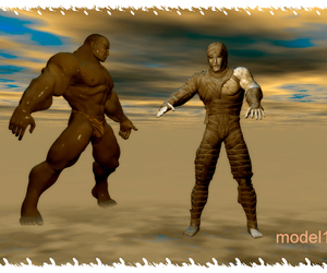 Interessante Figuren - ich sehe da allerdings ab und an den Hintergrund durchblitzen! Ansonsten würde ich! noch etwas damit rumexperimentieren - mit unterschiedlichen Hintergründen etc (Pyramide, Jungle!).