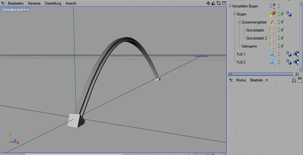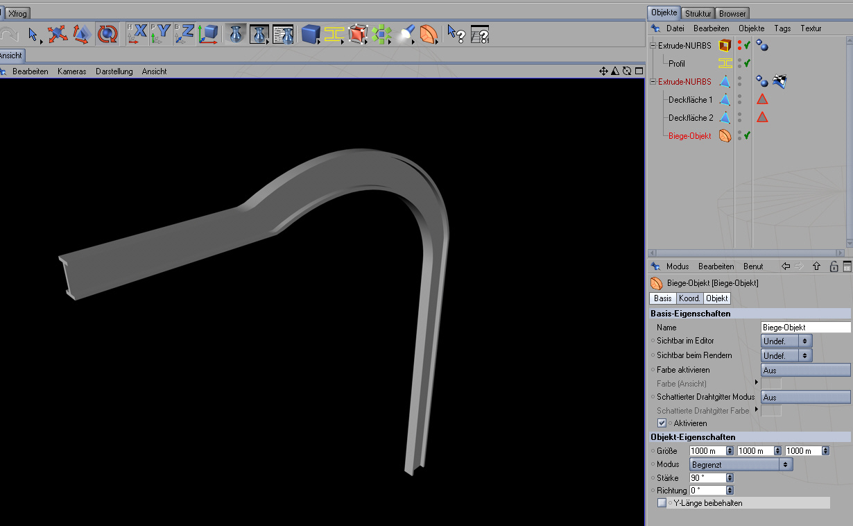 Ich habe ein Proplemm. Wie bekomme ich ein Objekt aus 1 Spline in einem Extrudenurbs getahn gebogen.