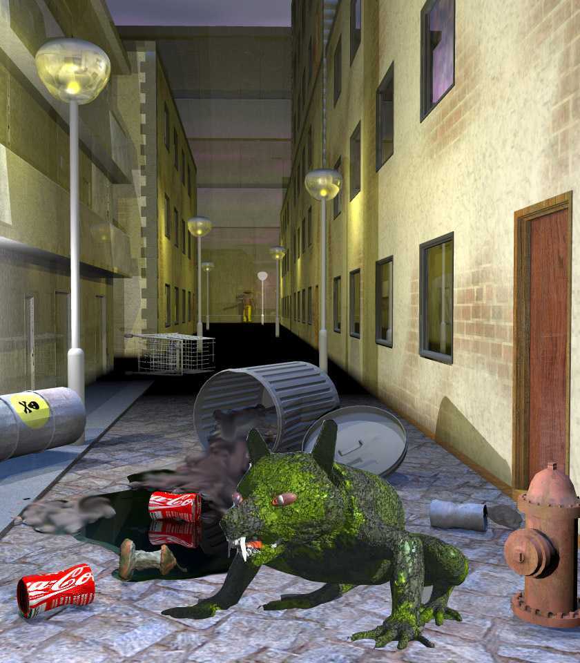 Die Gasse sieht gut aus. Der Ratte möcht ich nicht begegnen - zumal sie mit ihrem Schwanz anscheinend locker durch Metalltonnen durchkommt und damit für die atomare Verseuchung der Erde verantwortlich ist. ![]()