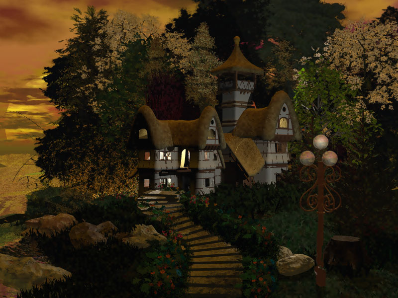 Es hat schon was von Kinkade, obwohl natürlich ein 3D-Render nie so aussehen wird wie ein Ölbild. Die romantische Stimmung ist sehr schön getroffen. =)