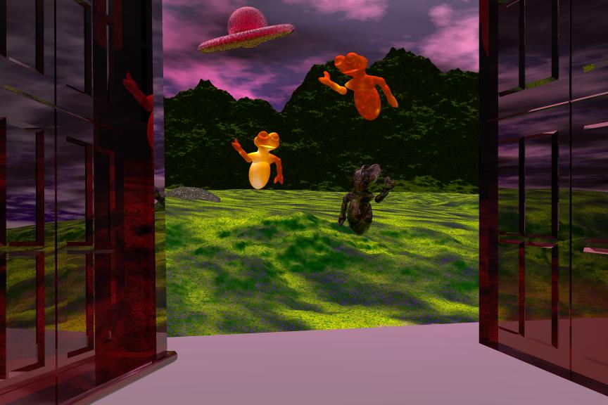 Ma im ernst, ich find das Bild richtig hübsch. Ein Blick durch die Tür / das Tor, das nenn ich mal ne schicke Perspektive. Die Aliens erinnern mich teilweise an Geister aus den Ghostbusters-Filmen ![]()