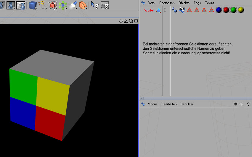 Aber noch nee Frage. Wie kann ich es erreichen das ich in 2 selektierten Bereichen die gleiche Farbe verwenden kann. ( Das sie ein und die selbe Farbe Textur verwenden.