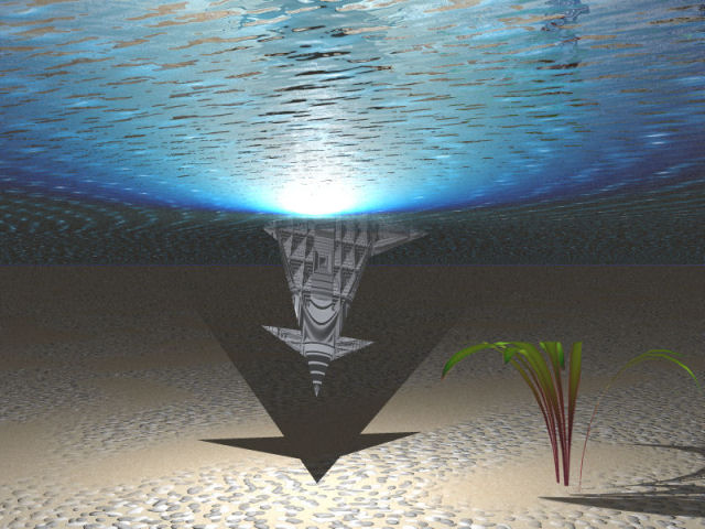 So, mein zweiter Versuch. Ein Raumschiff, dass ins Meer gestürzt ist.
