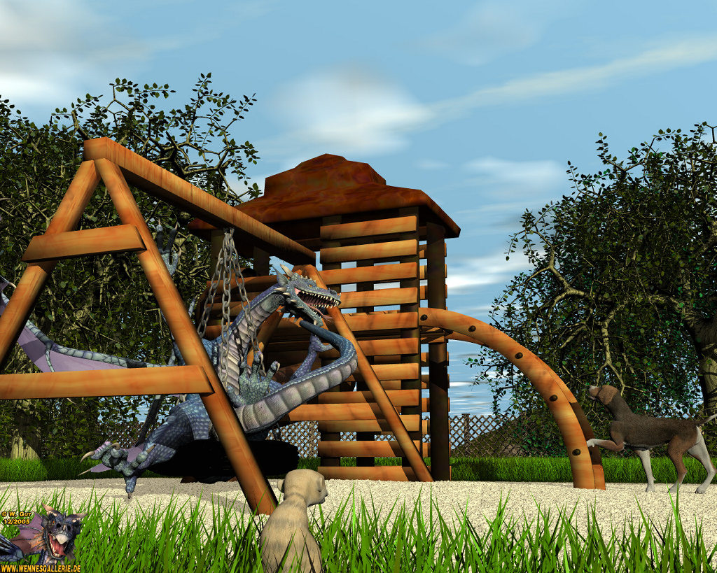 wo drachen schaukeln dürfen sicher auch hunde auf den spielplatz^^