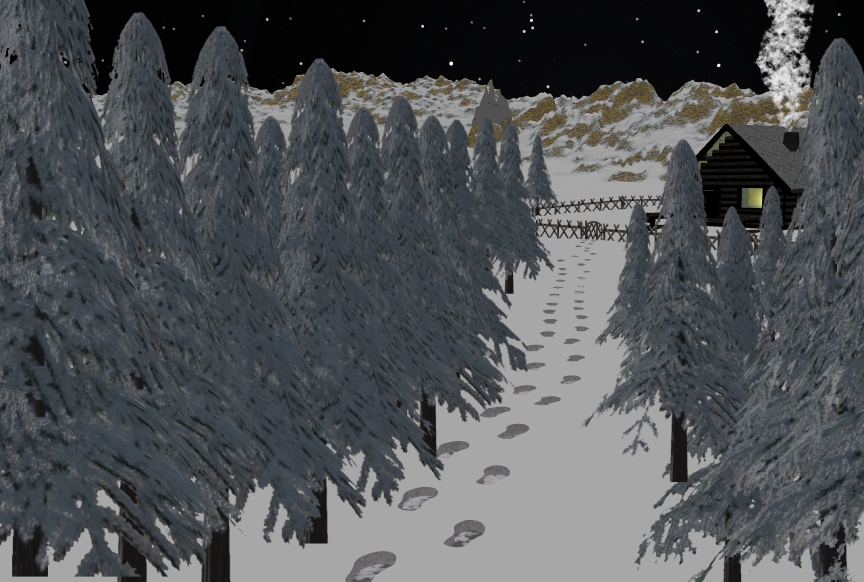 Da mir das Bild so gefiel und ich es was länger betrachtet habe sind mir 2 Dinge aufm zweitem Blick aufgefallen die mir nich so zusagen. Für mich fehlt ne ordentliche Portion Schnee aufm Dach des Hauses und vielleicht nochn paar Eiszapfen hier und da. Ich weiss jetzt nich ob Du das Dach schon mit soner Art Schneetextur überzogen hast, wirkt fast so, nur sieht das zumindest für mich nich nach viel Schnee aus. Vielleicht iss aber der Schnee auch gerade runtergerutscht ;)