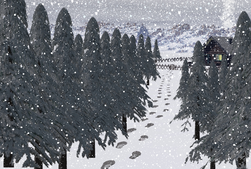 Da mir das Bild so gefiel und ich es was länger betrachtet habe sind mir 2 Dinge aufm zweitem Blick aufgefallen die mir nich so zusagen. Für mich fehlt ne ordentliche Portion Schnee aufm Dach des Hauses und vielleicht nochn paar Eiszapfen hier und da. Ich weiss jetzt nich ob Du das Dach schon mit soner Art Schneetextur überzogen hast, wirkt fast so, nur sieht das zumindest für mich nich nach viel Schnee aus. Vielleicht iss aber der Schnee auch gerade runtergerutscht ;)