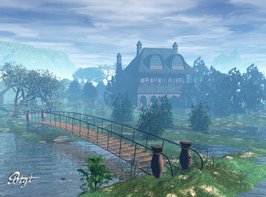 ich finde du hast das morgentliche so richtig getroffen nur hätte ich den fluss oder teich noch nach rechts auslaufen lassen damit die brücke richtig zur geltung kommt.
