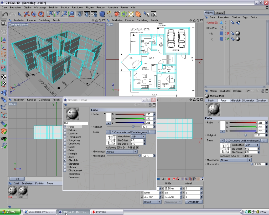 wird ja bestimmt ein chmuckes häuschen aber was mich als c4d laie frage wie bekommst du den grundriss auf deine arbeitsfläche.