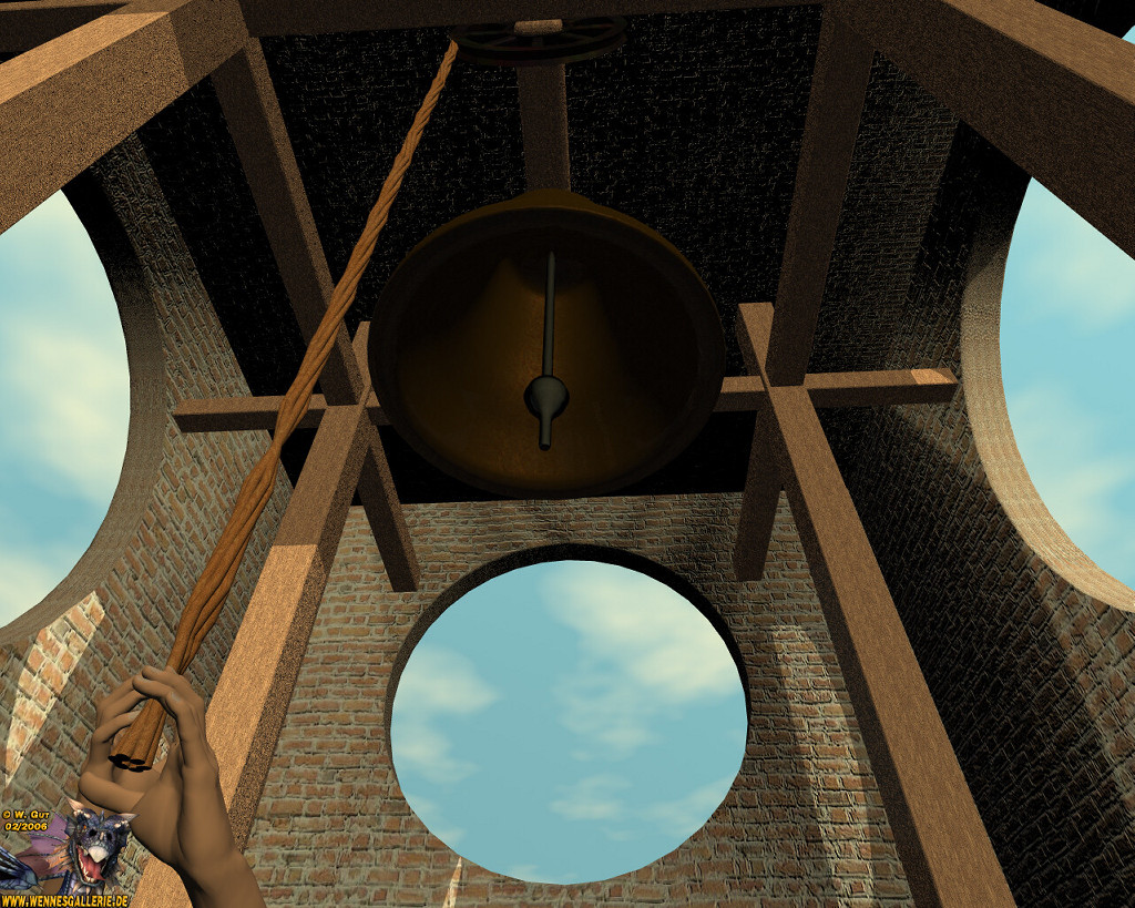 • Verwendete(s) Programm(e): Poser5 (Hände); C4D (Modelling des Glockenturms mit Glocke) und Bryce5.5 (Szene, Licht, Rendering)
