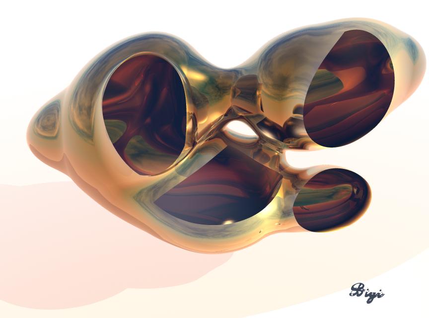 hurra, es klappt doch! Aber jetzt frage ich mich, wie Du das gemacht hast. Sieht für mich nämlich aus, als wenn Du boolesche Operationen benutzt hast, um Löcher in die Metaballs zu schneiden. Die sehen von innen so dünn aus, als wenn die nur aus einem dünnen Blech bestehen. ![]()