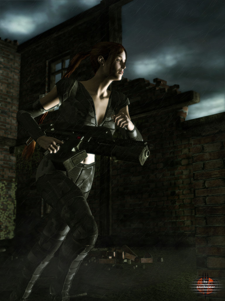 Sehr dynamisch und guter Regeneffekt. Aber kann es vielleicht sein, Daß der Körper selbst keine Schatten wirft? Ich entdecke Licht auf den Fingern und dem rechten Oberarm, wo eigentlich keines hinkommen kann.