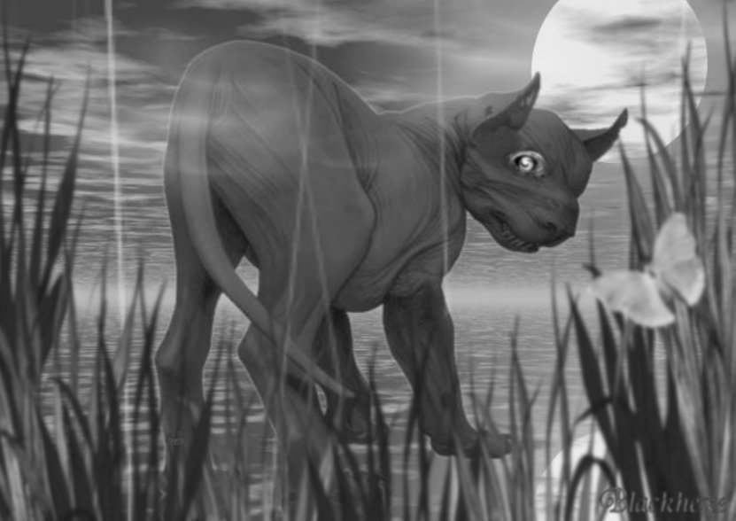 das orginal bild hab ich schon gelöscht das grau find ich grade gut das bild soll in richtung fantasie gehen das katzenähnliche getier da hab ich als tube im net gefunden fands gerade weils keine augen hat interessant nur seine orginalfarbe (rosa) fand ich schauderhaft habs dann mit verschiedenen himmelsfarben im bryce ausprobiert die resultate gefielen mir alle nicht besonders daher die farbe grau und im hintergrund habe ich extra nicht gemacht weil die fantasie unendlich ist