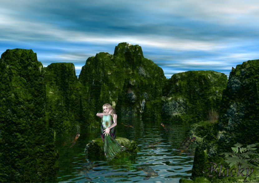 Schade, dass die Nixe kein 3D-Objekt ist, sonst könntest du sie noch ein bisschen drehen, damit man die Pose besser erkennen kann.