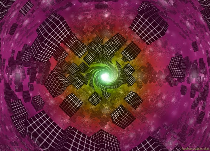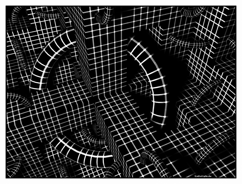 Ja das ist doch dieser Trick mit den weissen linien und den "schwarzen" Punkten... Von dir einfach in 3 Dimensionen... coole Idee.