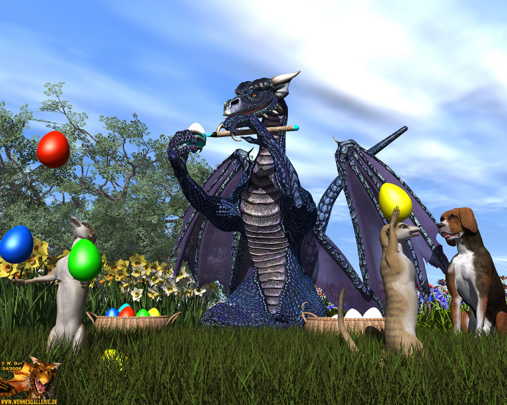 Dragobert muss noch schnell die Ostereier bunt anmalen. So ganz weiß sind sie ja langweilig. :]