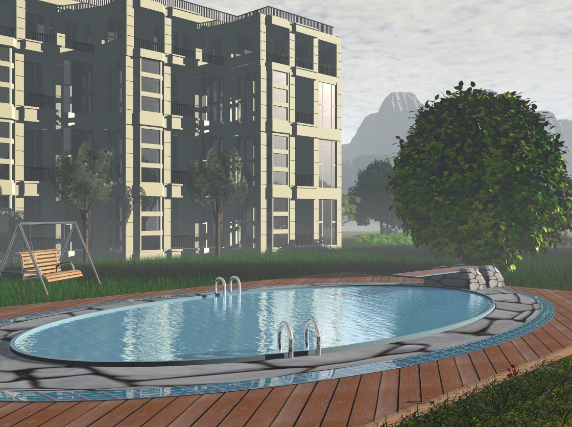 Hmja, gefällt mir. Allerdings sehen die Steinplatten um den pool noch sehr flach aus. Du könntest sie ausmodellieren. Dieses Tut könnte dir vielleicht dabei behilflich sein (unten auf "Fredi Voss', Gehweg" klicken):