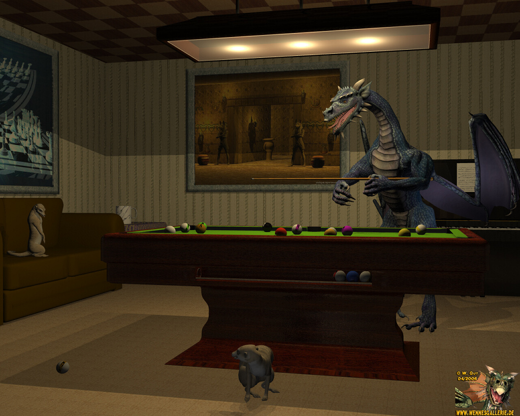 Da hat Dragobert gleich mal das neue Billard-Set ausprobiert! (Im Downloadbereich erhältlich!) Ein wenig üben muss er aber noch. ![]()