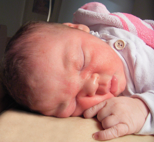 Das ist meine Tochter Hjordis Rebekka, geb. am 25.4. um 19.30, 56 cm groß und für mich die schönste Frau der Welt (auf dem Foto gerade mal 2 Stunden neu).