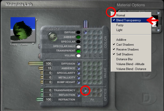 • Hallo esha, danke für die schnelle Hilfe. Ich habe es nach Deiner Anleitung gemacht, leider hat das nix gebracht, nun sind die Blätter (Klötze) halb-transparent. Ich exportiere es z. B. im OBJ-Format aus X-Frog, wähle dann "Create Col File". Der Baum ist dann nach dem Import in Bryce ohne Texturen. Die Blätter sind richtige Klötze. Mache ich evtl. beim Export aus X-Frog schon was falsch ??