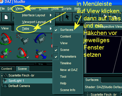 Bild 1: wie bzw. wo das Surface-Fenster (auch andere Fenster) geöffnet werden