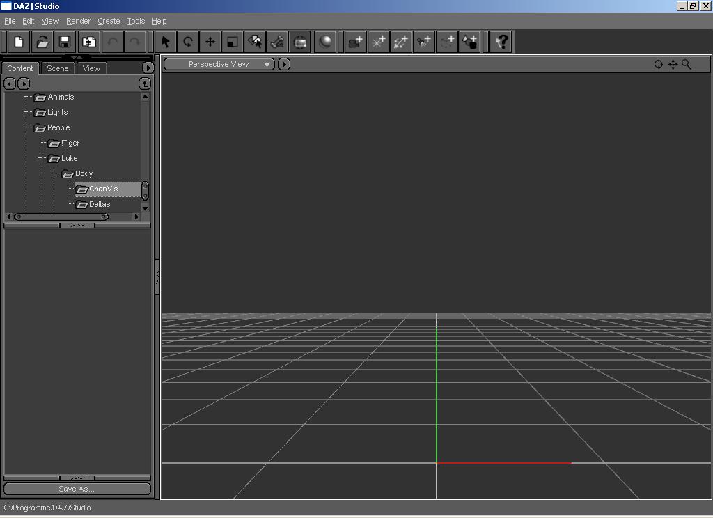Wenn ich deinen Screenshot so ansehe, fällt mir auf, daß Du hier den ChanVis-Ordner von Luke offen hast! In diesem Fall kannst Du hier logischerweise nichts sehen, weil sich in diesen Ordner nur die Hilfs-OBJ für diese Figur befinden ( Morphobjekte ). Leg mal einen Screenshot nach, der den regulären Figuren-Ordner offen zeigt (z.B. V3) und ob da die Figur sichtbar ist. Dann sehen wir mal weiter...Auch in deinem zweiten Screenshot ist nur dieser Ordner offen!