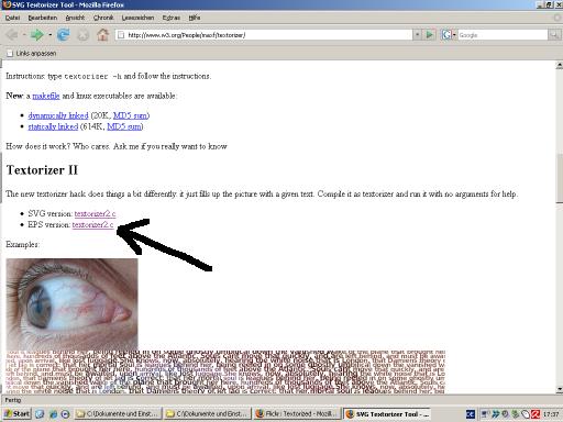 Die Seite mit dem Quellcode ist: http://www.w3.org/People/maxf/textorizer/Die besagte Datei habe ich auf dem Bild mit dem Pfeil markiert.