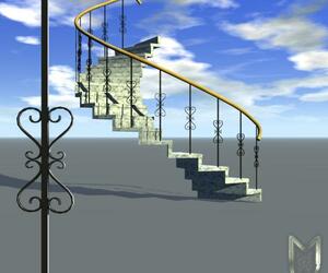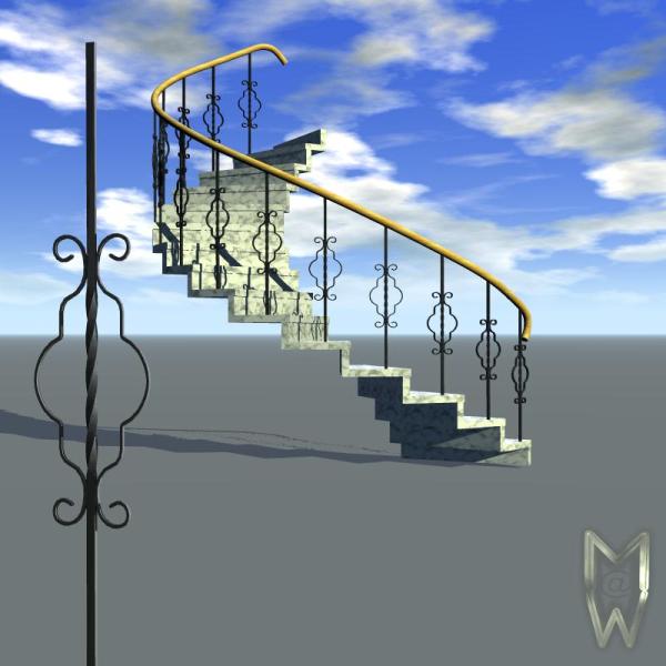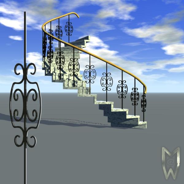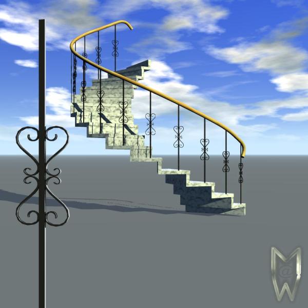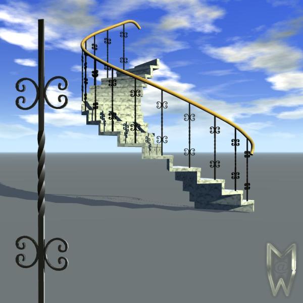 Das neueste Objekt ist eine Wendetreppe mit unterschiedlichen Geländern. Ich habe es gerade mal in Bryce importiert und mit einer einfachen Textur belegt um zu sehen wie es aussieht. Was haltet ihr davon?Gruß