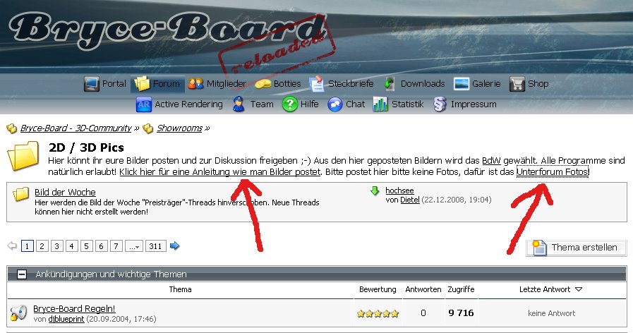 Bei dem Showroom: 2D / 3D Pics funktionieren die Links zur „Anleitung zur Erstellung von neuen Bildern“ noch nicht und der Link zum Fotoforum auch noch nicht.