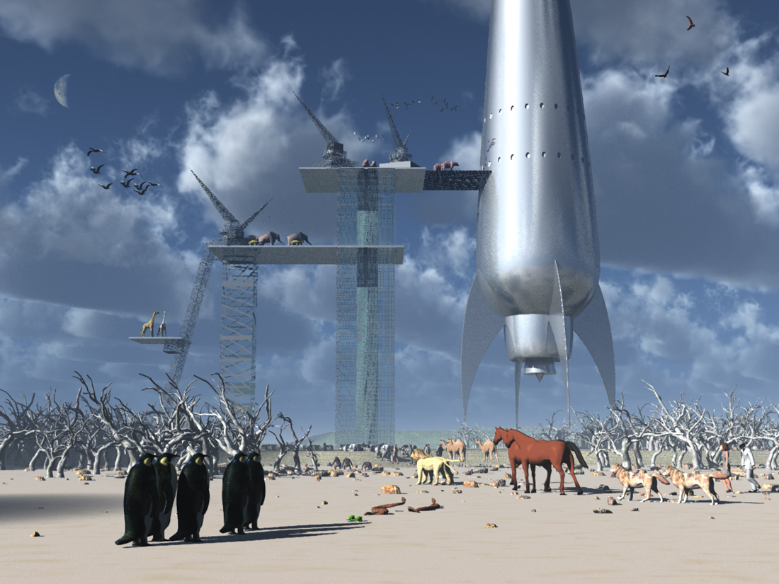 Verwendete(s) Programm(e): Vue 6 in, Poser 6, Carrara 1.1 (einige Objekte), C4d V 6 (Modeling Rakete)