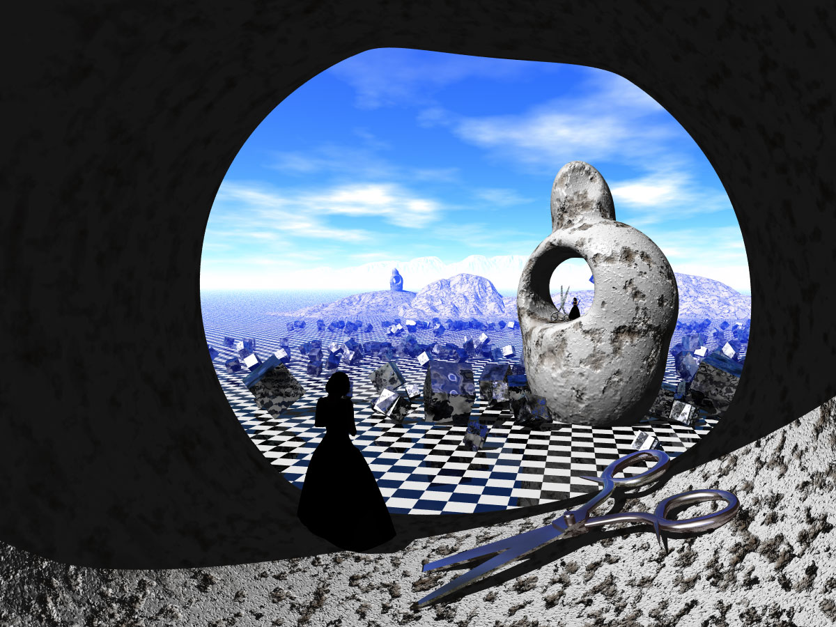 Eine surreale Szene mit Metaballs und carrara-freebies (Scheren). Hoffe es gefällt!