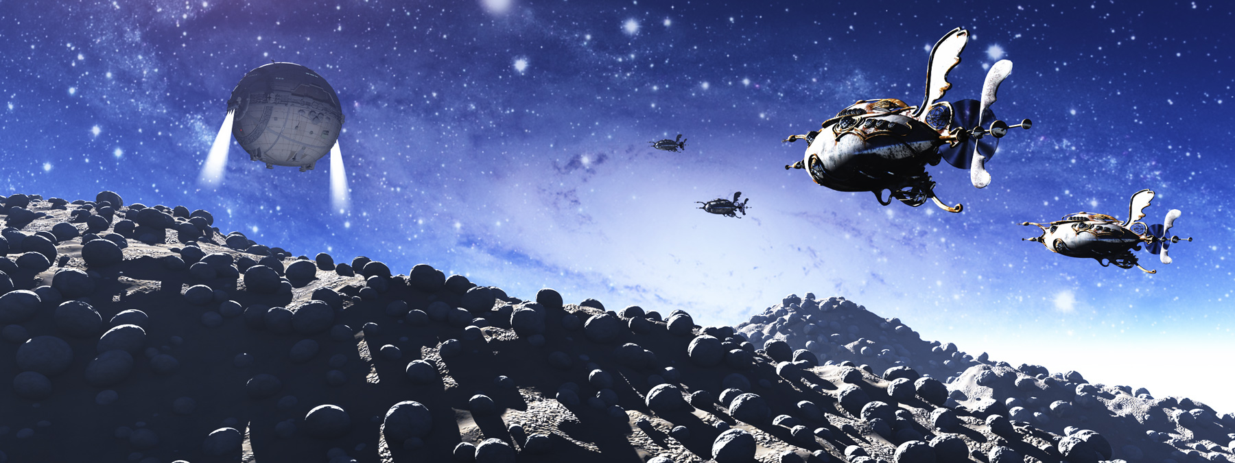Verwendete(s) Programm(e): Vue, Raumkreuzer von spacebone und Steampunk-Raumschiffe von c3d