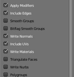 meine Export Settings sehen so aus.Wobei ich die Material Gruppen zusätzlich angehakt habe.