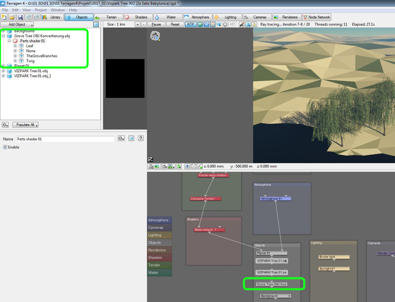 Jetzt aber step by step. Wie an anderer Stelle geschrieben, nimmt DS/OC z.B. den VIZPARK FBX Baum beeindruckend gut an. Da TG4 den Grove Baum als FBX ablehnte, dachte ich mir, konvertiere ich den VIZ Baum eben auch zu OBJ in Blender. Diesmal aber lehnt Blender die FBX ab. Also hab ich's über DS gemacht, hat funktioniert und dann via OBJ nach TG geladen. Ich poste die Probleme gleich jeweils im Blender und TG Forum, damit ich die Sachen auseinander halten kann. -