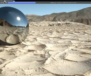 In dem Fall - weil ich von dieser Bodentextur so begeistert war - fragte ich mich, wie diese Bodentextur denn wohl auf der Chrome Kugel aussehen würde, und wupps, kam das dabei raus...